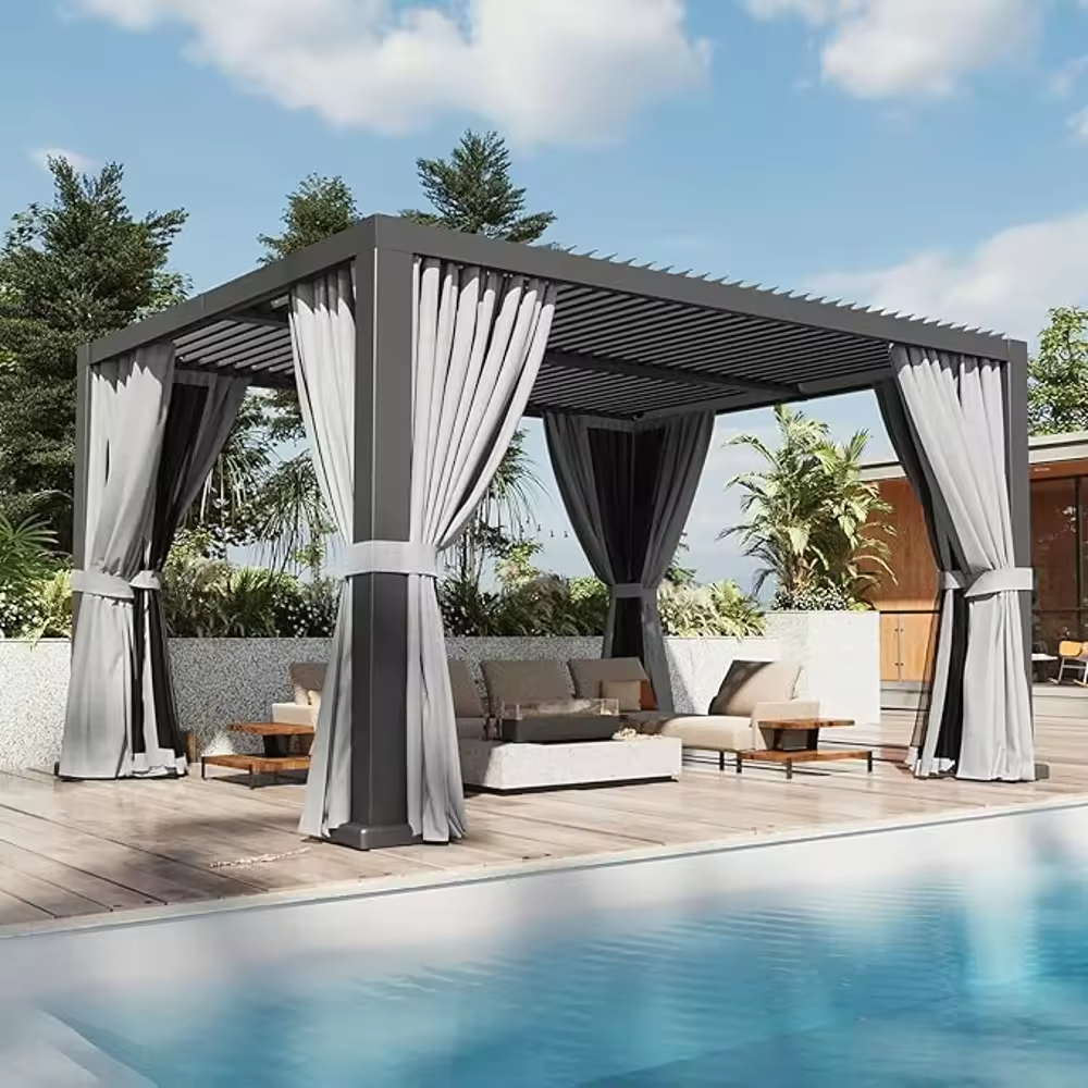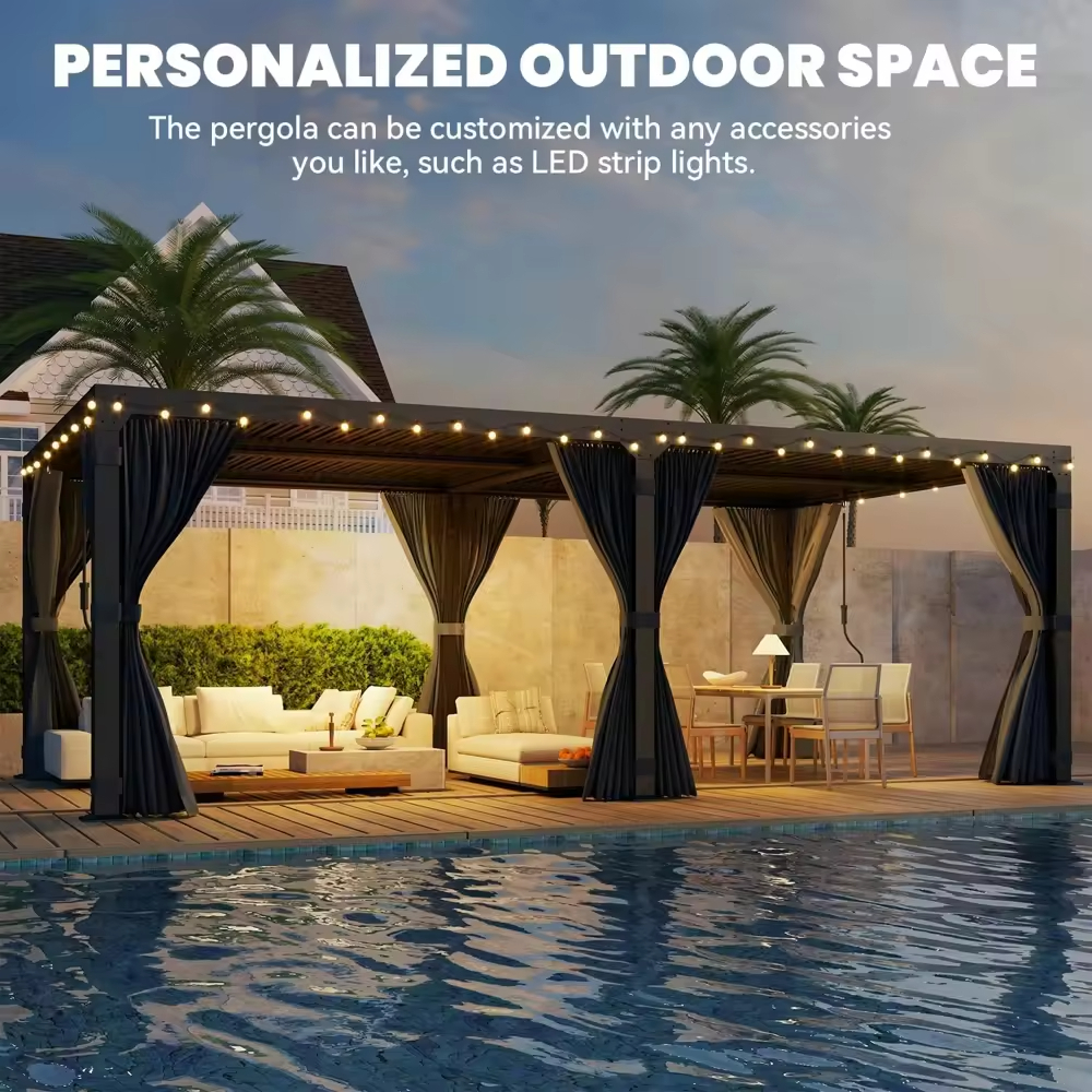 Anyhoo Custom Motorized Aluminum Alloy LED Light Pergola Gazebo