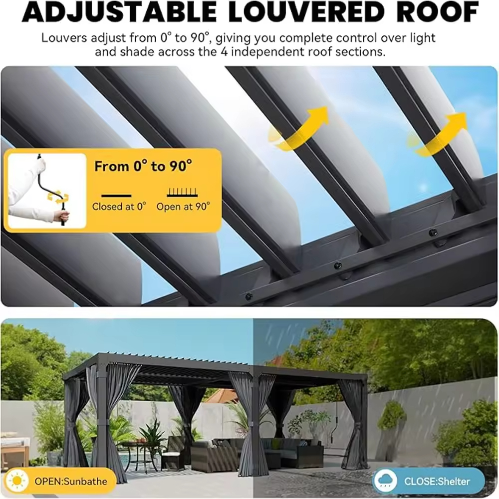 Installation is simple with professional instructions, and maintenance is minimal due to the aluminium frame and powder-coated finish. Occasional cleaning and inspection of the louvers will keep your pergola looking and functioning like new for years.