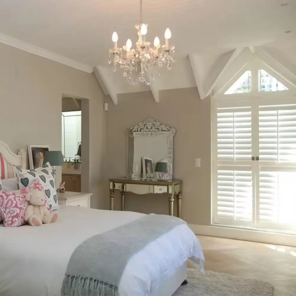 Timber shutters for modern group and special shaped windows are suitable for living rooms, bedrooms, offices, hotels, resorts, staircases, feature walls, and architectural showcase spaces. They provide effective light control, privacy, and a distinctive design statement for both modern and classic interiors.